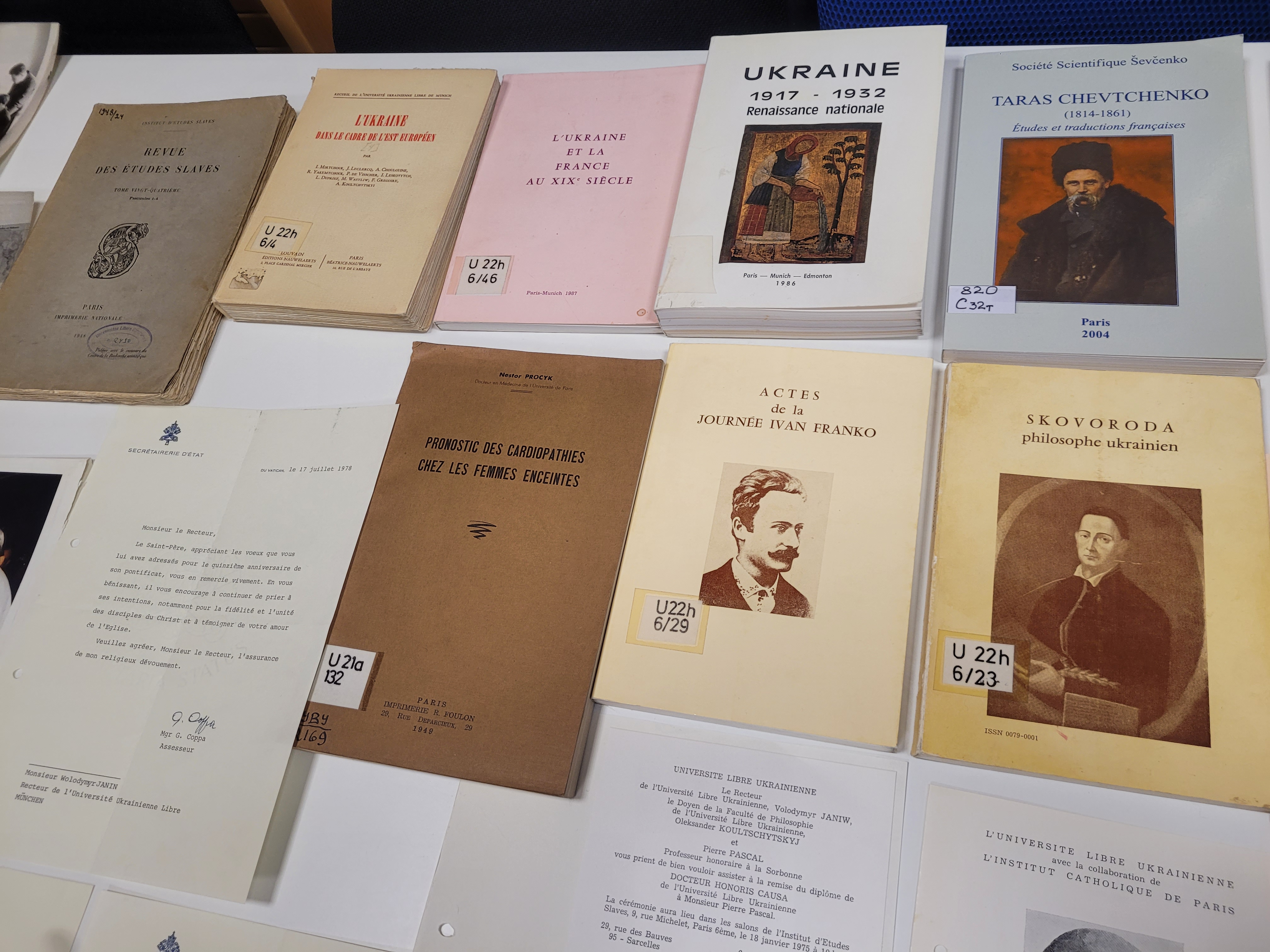 Aus diesem Anlass präsentierte der Referent der Universität, Dr. Roman Tiutenko, eine Auswahl an Dokumenten und Publikationen aus den Beständen der Universität. Anhand von Lebenswegen und Werken bedeutender Persönlichkeiten der ukrainischen Diaspora in Frankreich und Deutschland wurde die enge Verbindung der Universität mit dem französischen wissenschaftlichen Raum veranschaulicht.