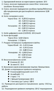 Перелік платних послуг, які надаються в УВУ, і тарифи на них станом на 01.01.2025 р.