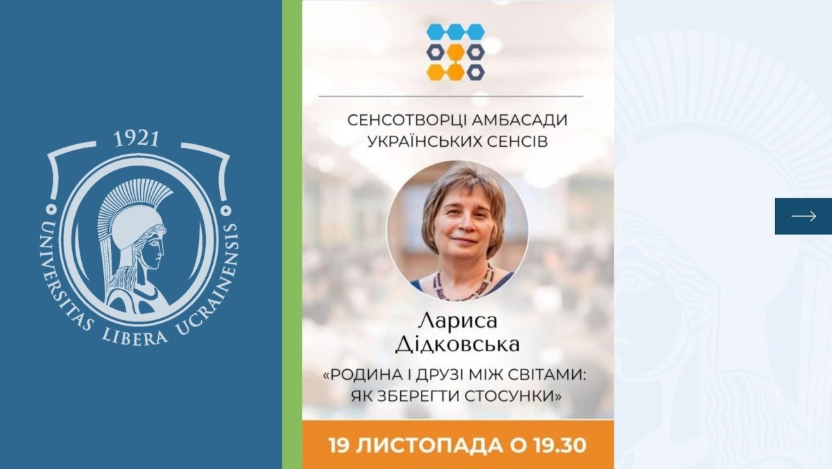 19 листопада на проєкті Амбасади українських сенсів УВУ мав честь представити сенсотворицю – нашу ректорку, професорку Ларису Дідковську.