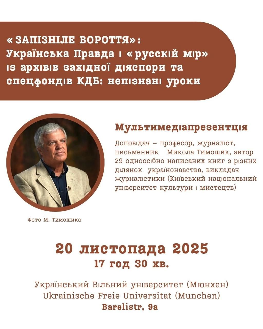 УВУ запрошує на мультимедіапрезентацію від професора з України Миколи Тимошика