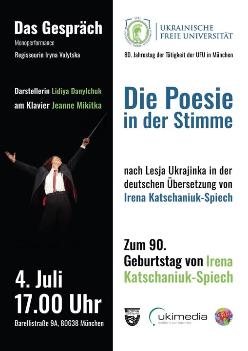 4 липня 2025 р. запрошуємо на Мистецьку імпрезу до 90-річчя з Дня народження Ірени Качанюк-Спєх — мовознавчині, перекладачки, авторки, багаторічної викладачки Українського Вільного Університету та Мюнхенської Volkshochschule.