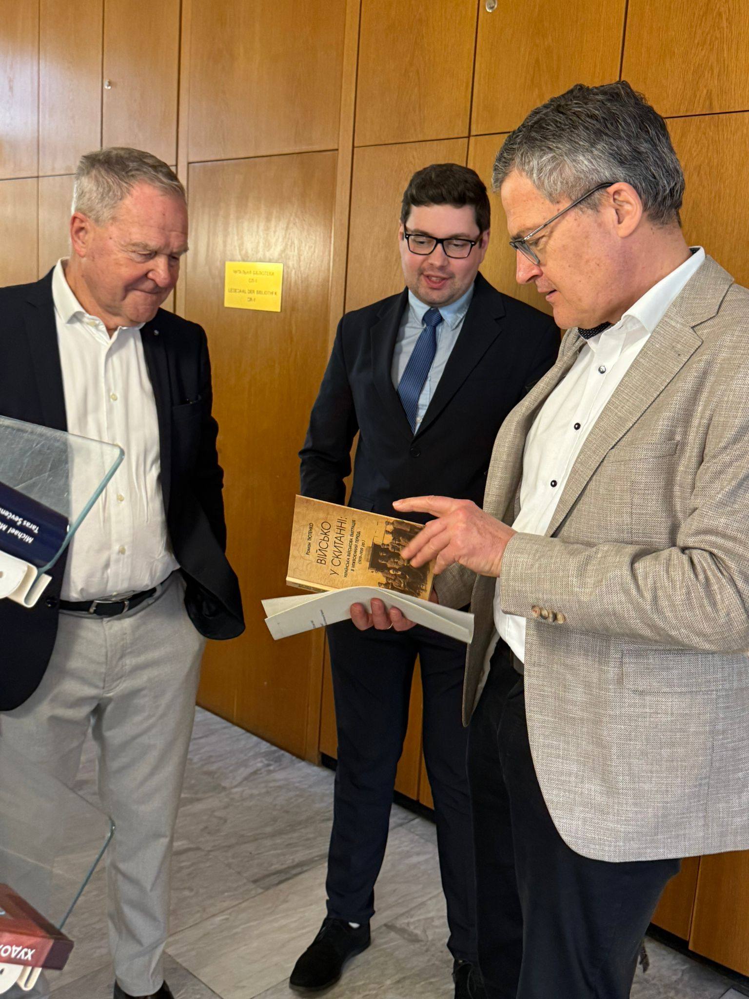 Nachdem er Materialien gesichtet hatte, die die Unterstützung der Ukrainischen Freien Universität durch deutsche politische und kirchliche Kreise im 20. Jahrhundert dokumentieren, versicherte Roderich Kiesewetter, die Universität auch künftig im soziopolitischen Bereich tatkräftig zu unterstützen.