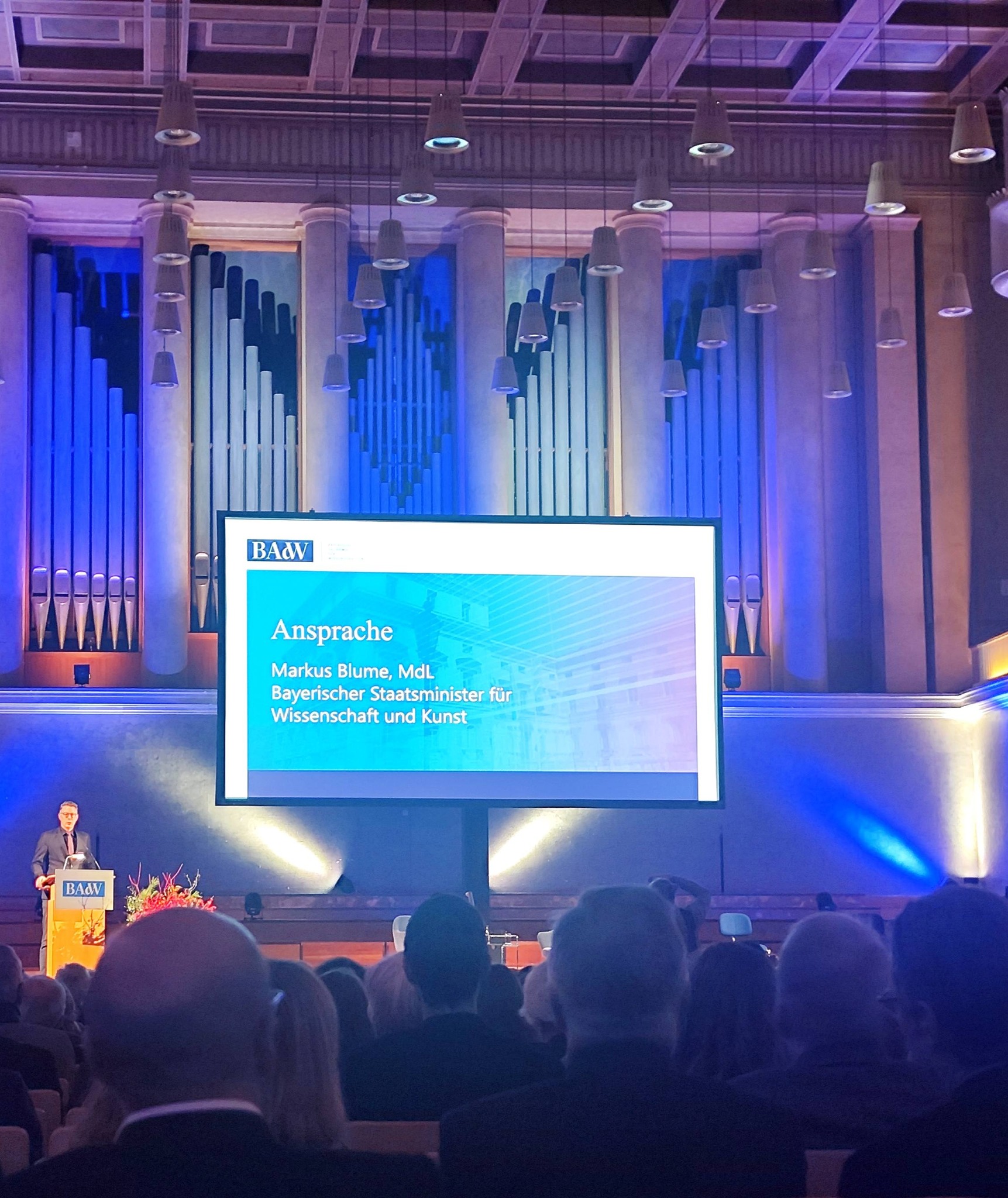 Die Begrüßungsrede von Bayerischer Staatsminister für Wissenschaft und Kunst, MdL Markus Blume betonte: „Wir sind eine Gemeinschaft, die sich darauf konzentriert, die Antworten für die Zukunft selbst zu geben.” Dies ist das Credo der UFU: Wir warten nicht auf Antworten, wir gestalten sie – durch Forschung, Dialog und unseren unbeugsamen Willen.