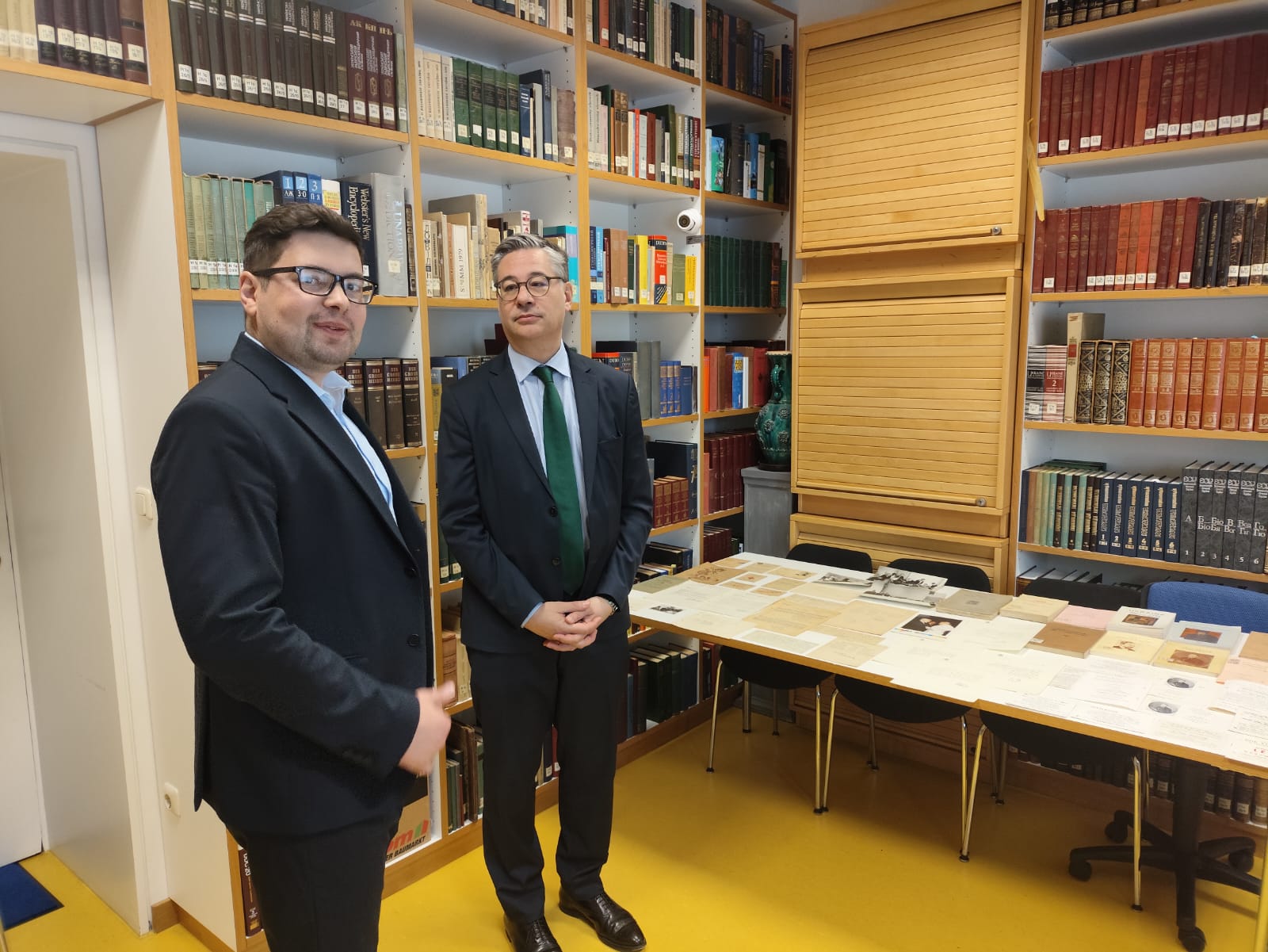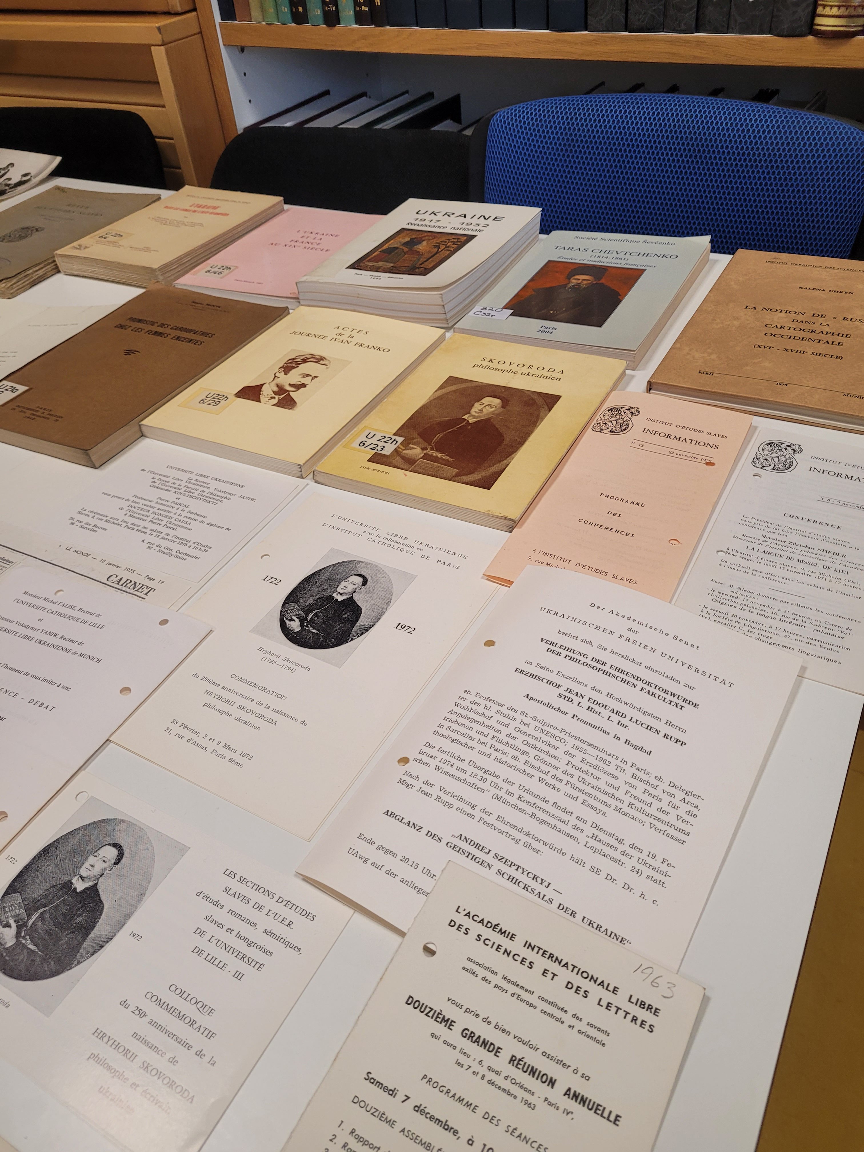 Aus diesem Anlass präsentierte der Referent der Universität, Dr. Roman Tiutenko, eine Auswahl an Dokumenten und Publikationen aus den Beständen der Universität. Anhand von Lebenswegen und Werken bedeutender Persönlichkeiten der ukrainischen Diaspora in Frankreich und Deutschland wurde die enge Verbindung der Universität mit dem französischen wissenschaftlichen Raum veranschaulicht.