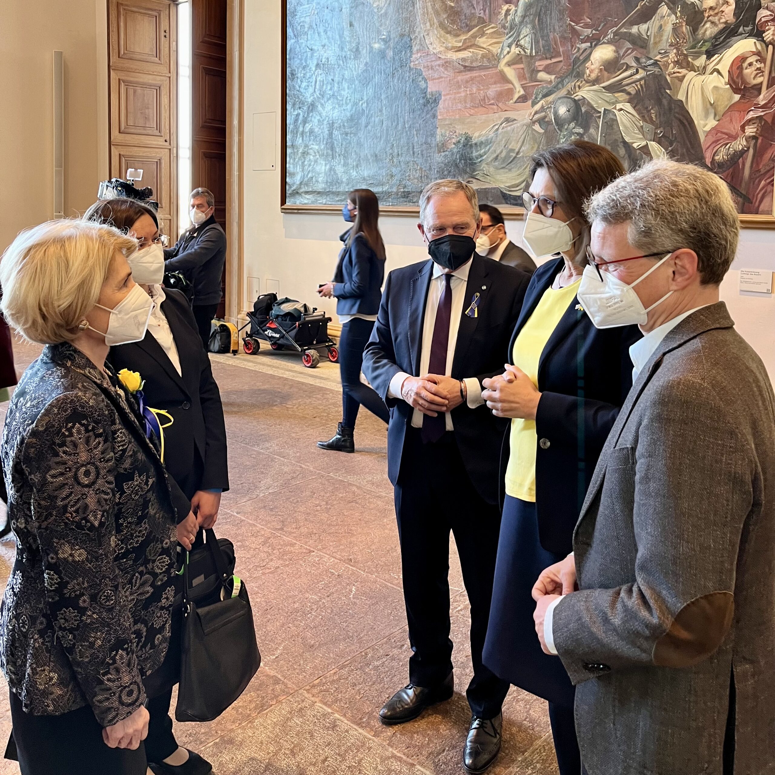 Zu Sitzungsbeginn der aktuellen Stunde „Krieg in der Ukraine – Konsequenzen für Deutschland und Bayern“ begrüßte Landtagspräsidentin Ilse Aigner die Vertreterinnen der UFU und hob die Bedeutung und Einzigartigkeit der UFU als Exiluniversität mit Sitz seit 1945 in München hervor. Sie bezeichnete den Krieg in der Ukraine als Bedrohung für die Demokratie und die Freiheit nicht nur in der Ukraine sondern in der gesamten demokratischen Welt.