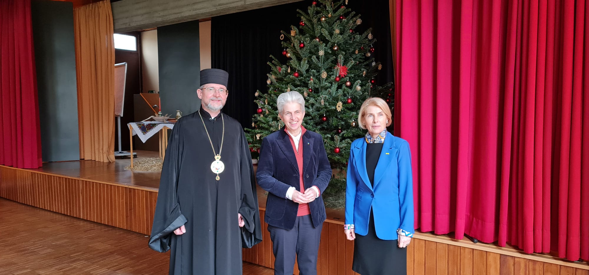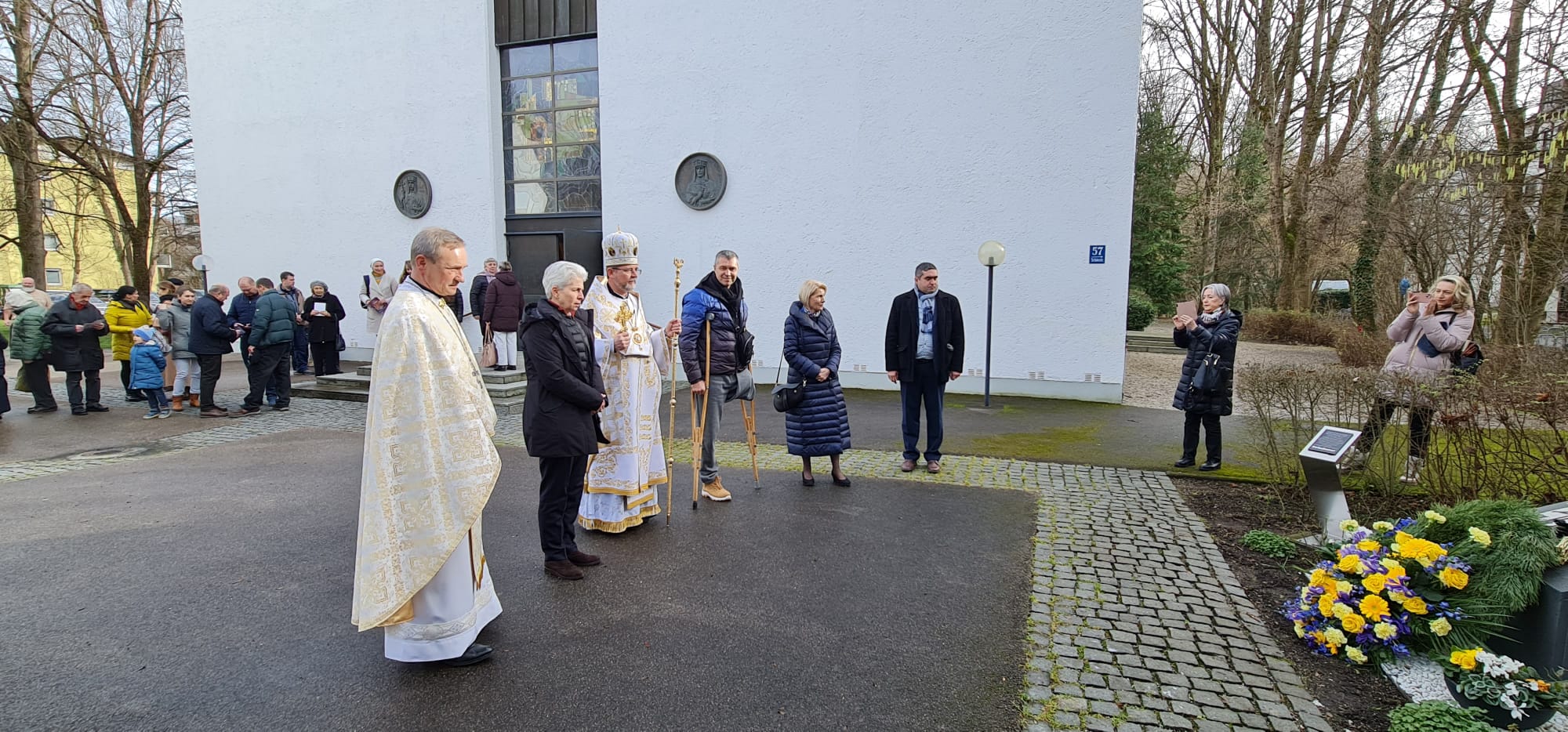 Die Freude bei den Verantwortlichen der Ukrainischen Freien Universität (UFU) in München war groß, als vor einigen Wochen die Zusage für einen halbtätigen Besuch von einer der derzeit bekanntesten Abgeordneten im Deutschen Bundestages feststand: Die Vorsitzende des Verteidigungsausschusses Dr. Marie-Agnes Strack-Zimmermann, MdB, folgte am 14. Januar der Einladung von Rektorin Prof. Dr. Maria Pryshlak nach München, um Institutionen und Vertreterinnen und Vertreter der Ukrainischen Diaspora zu besuchen und kennenzulernen. Bevor es an die UFU ging, kam Dr. Strack-Zimmermann in der griechisch-katholischen Kathedrale Maria Schutz zum Ausgang des Festgottesdienstes anlässlich des nach dem julianischen Kalender Neujahrstages hinzu. Der Kinderchor der Gemeinde, der derzeit auch Kinder von Kriegsflüchtlingen in seinen Reihen hat, führte einige Lieder auf. Im Anschluss gedachte die Abgeordnete gemeinsam mit dem Apostolische Exarch für Deutschland und Skandinavien Bischof Dr. Bohdan Dzyurakh der Opfer des Holodomor von 1932/33. In seiner Resolution vom 30.11.2022 hatte der Bundestag den Holodomor als Genozid am ukrainischen Volk anerkannt. Viele der anwesenden Gemeindeglieder hatten in dieser Zeit aus ihren Reihen Familienmitglieder verloren.