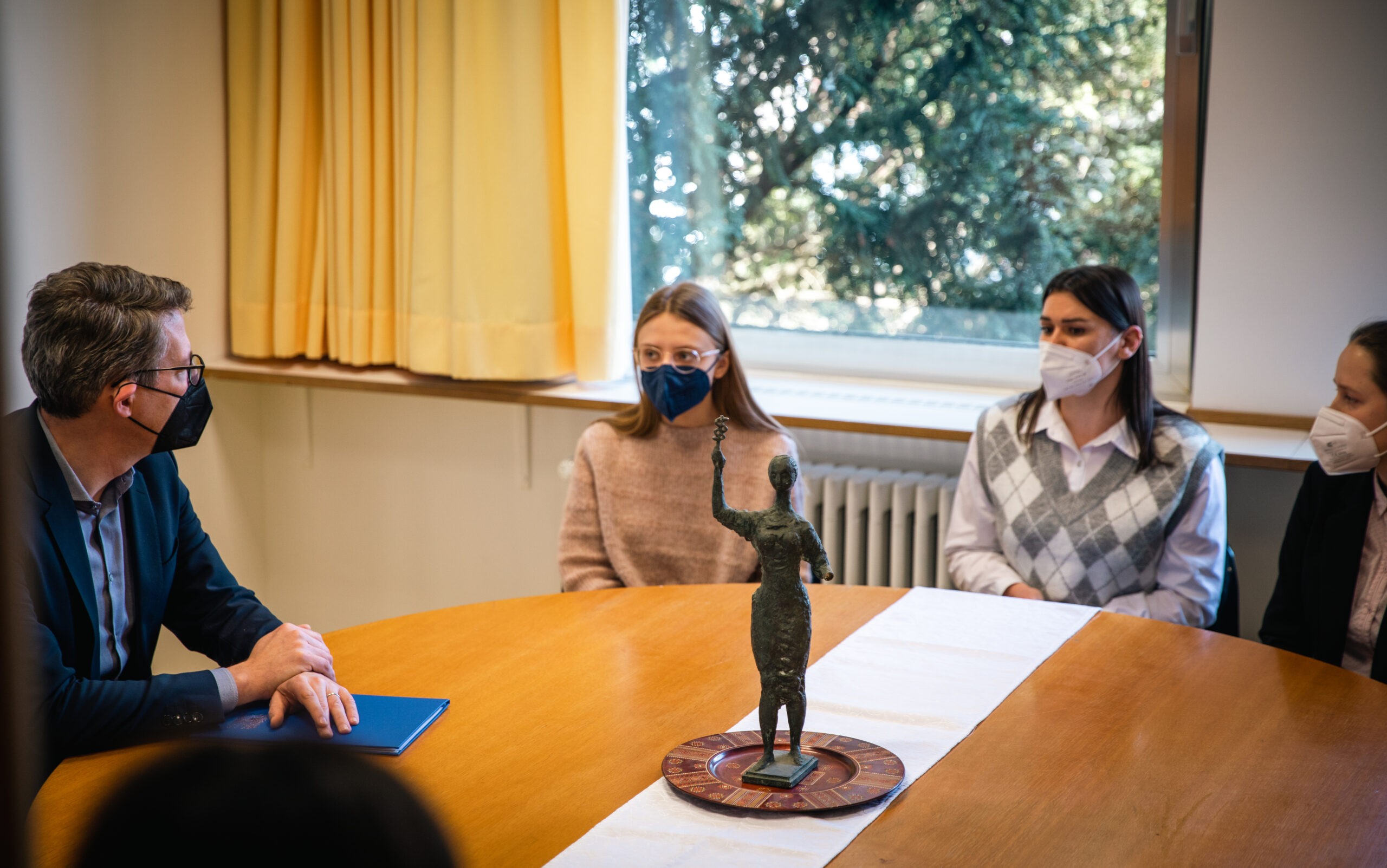 „Es lohnt sich unsere Studierenden zu unterstützen, das damit stärker denn je die nächste Generation von Führungskräften ausgebildet wird, die die Ukraine wieder aufbauen bzw. beim Wiederaufbau für einen freiheitlich-demokratischen ukrainischen Staat auf allen Ebenen – wirtschaftlich, gesellschaftspolitisch sowie politisch – ihr erworbenes Know-How einbringen können“, so Rektorin Prof. Dr. Maria Pryshlak gegenüber dem Staatsminister.