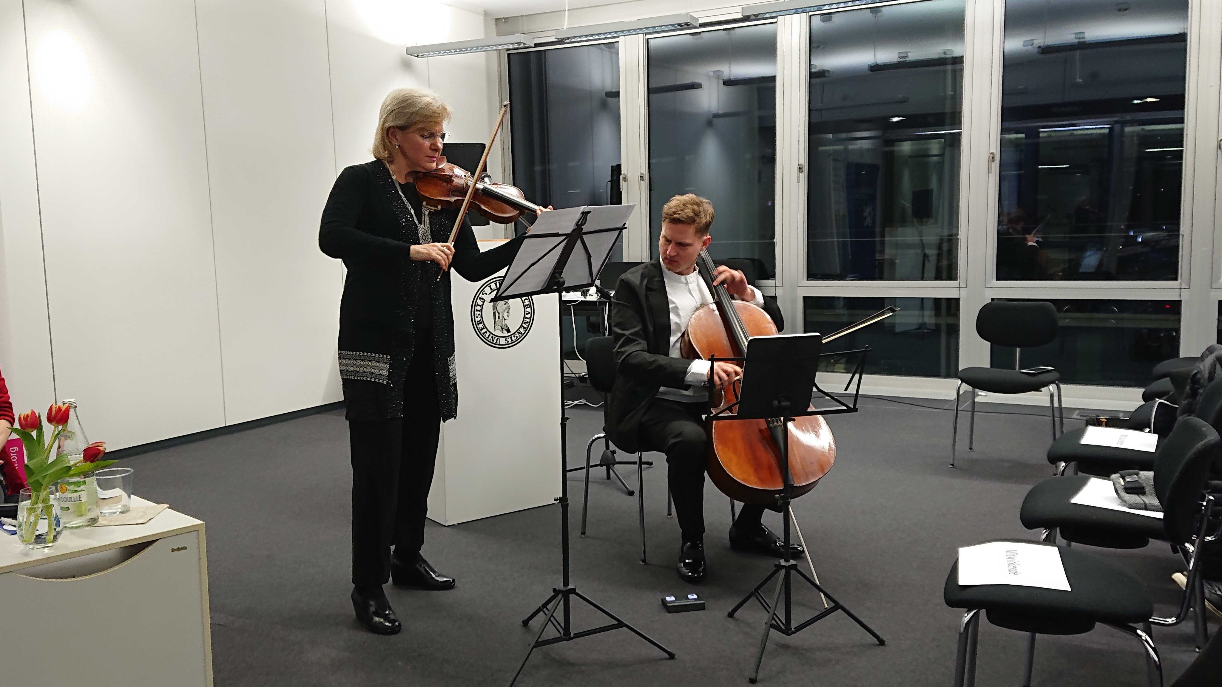 Im Mittelpunkt des Abends stand der Autor und Journalist Steffen Dobbert, der aus seinem neuen Buch vorlas. Dobbert, der derzeit als einer der profundesten Kenner der Ukraine in Deutschland unterwegs ist, beschreibt in seinem Buch den schwierigen Weg zur Freiheit und die Entwicklung des ukrainischen Nationalbewusstseins. Aus dem Buch las er Abschnitte über den Holodomor vor – das systematische Verhungernlassen der ukrainischen Bevölkerung durch Diktator Josef Stalin 1932/33, infolgedessen Millionen von Ukrainerinnen und Ukrainer verstarben, sowie Eindrücke zur Maidan-Revolution von 2013/14, sowie zum Beginn des Krieges im Jahr 2014, bei dem nach der Annexion der Krim sowie der kriegerischen Auseinandersetzungen mit von Russland ausgestatteten Kämpfern sowie russischen Armeeangehörigen insgesamt bis zur russischen Invasion ab dem 24.02.2023 über 14.000 Menschen verstarben. Für den musikalischen Rahmen sorgten Violinistin Natalija Raithel und Olexander Lysiuk am Violoncello.