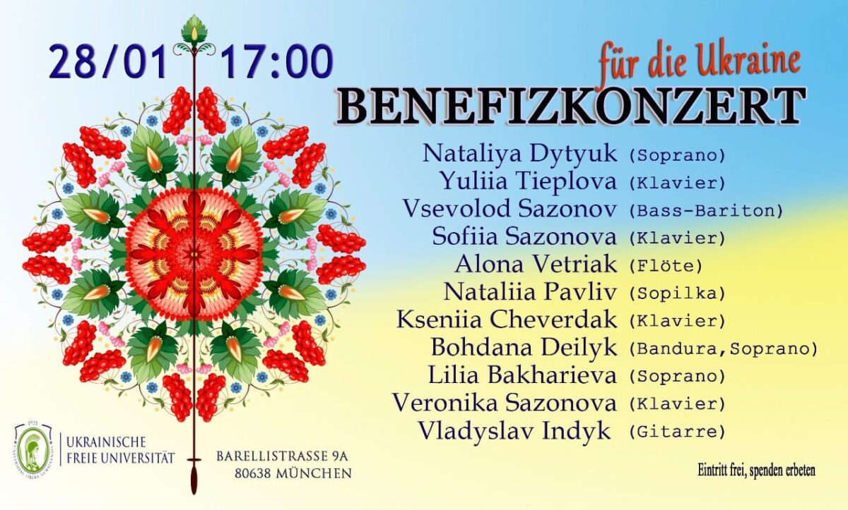 Wir laden Sie herzlich zum Benefizkonzert für die Ukraine ein, das am 28.01 um 17:00 an der Ukrainischen Freien Universität stattfindet.
