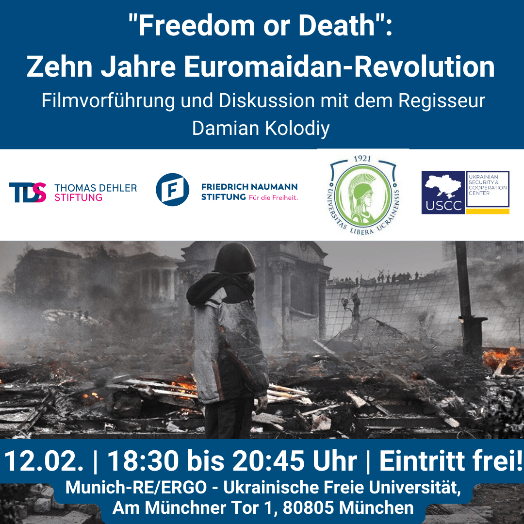 Gemeinsam mit der Friedrich Nauman-Stiftung und der Thomas Deler-Stiftung laden wir Sie am 12. Februar zur Veranstaltung „Freedom or Death: Zehn Jahre Euromaidan-Revolution“ ein. Im rahmer der Veranstaltung findet die Filmvorführung und Diskussion mit dem Regisseur Damian Kolodiy statt.