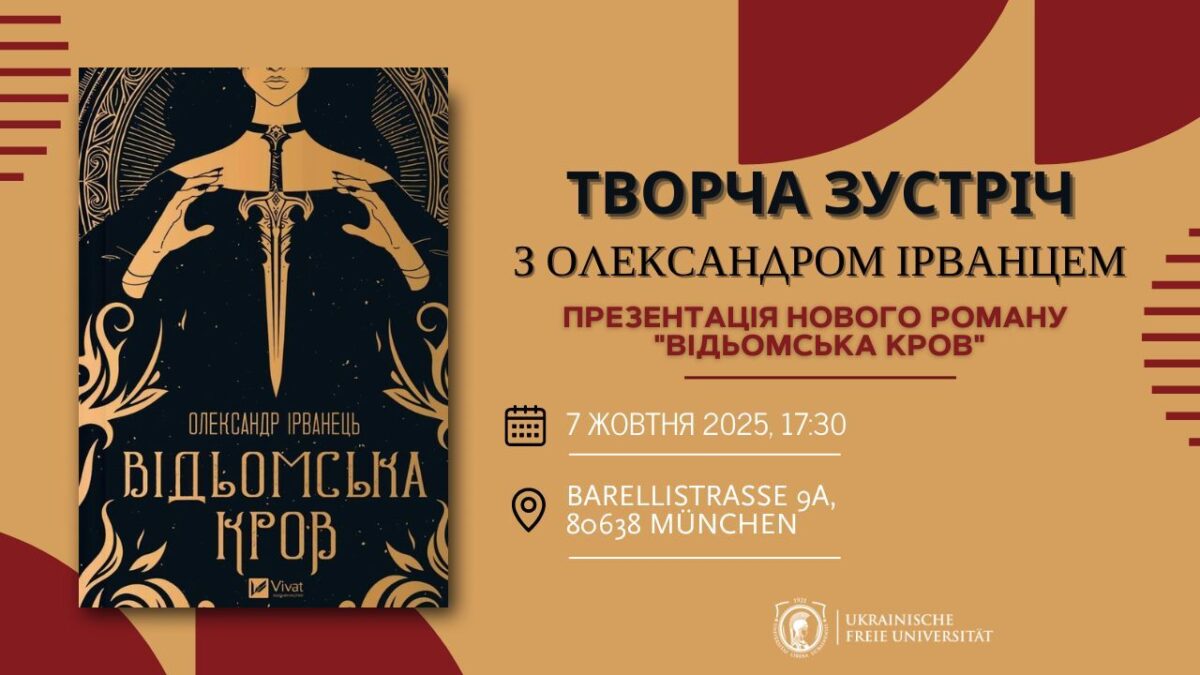 Запрошуємо на творчу зустріч із культовим українським письменником Олександром Ірванцем та презентацію його нового роману „Відьомська кров“.