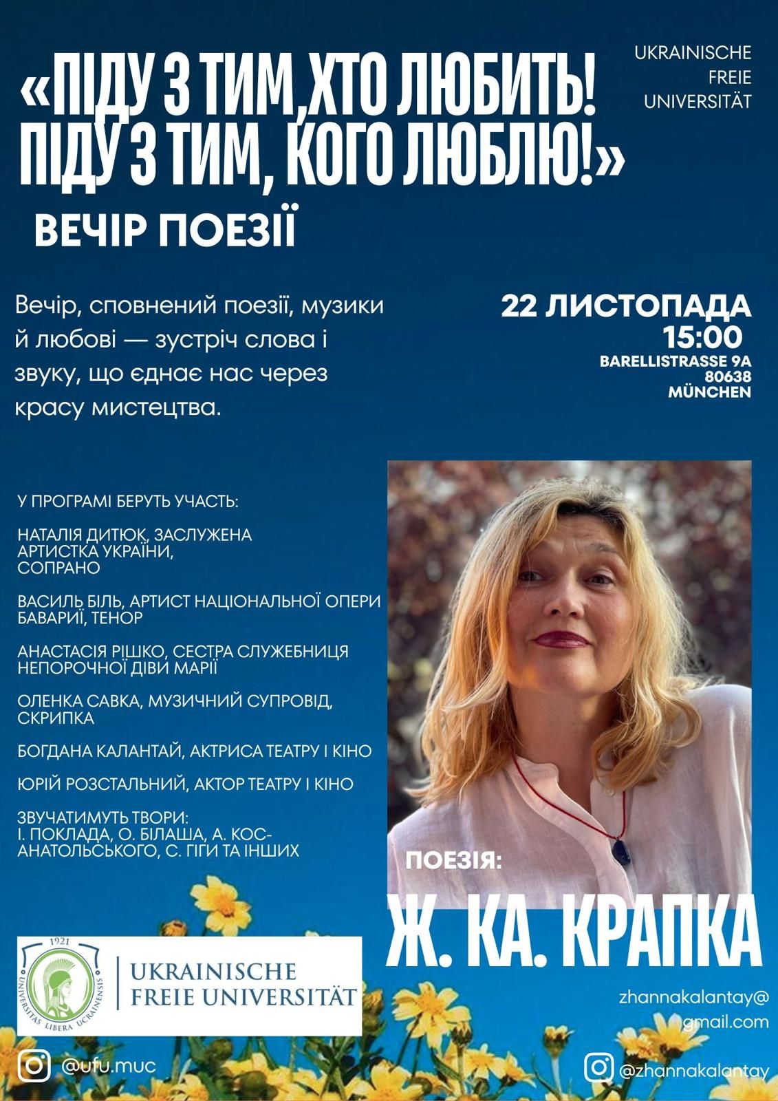 22 листопада відбудеться вечір поезії, музики й любові, що об’єднає слово і звук через красу мистецтва
