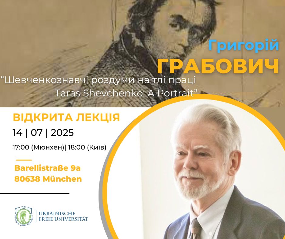 Запрошуємо 14 липня о 17:00 год. на відкриту лекцію відомого шевченкознавця, лауреата Шевченківської премії, історика літератури і критика проф. Григорія Грабовича “Шевченкознавчі роздуми на тлі праці Taras Shevchenko: A Portrait