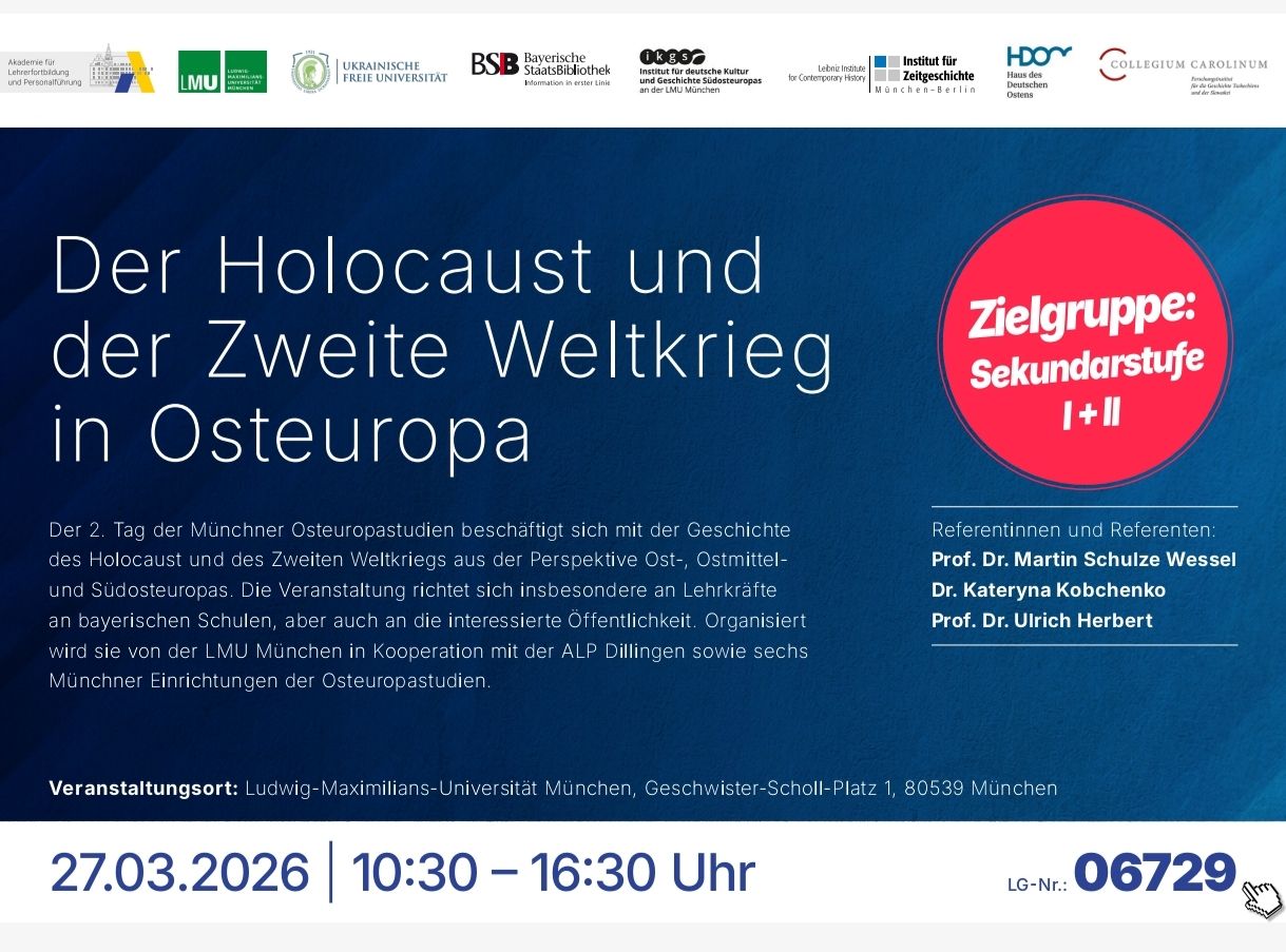 Ця подія присвячена переосмисленню історії Другої світової війни та Голокосту з перспективи Східної, Центрально-Східної та Південно-Східної Європи. Програма розрахована на викладачів баварських шкіл, студентів, науковців та широку громадськість, яка цікавиться історією регіону.