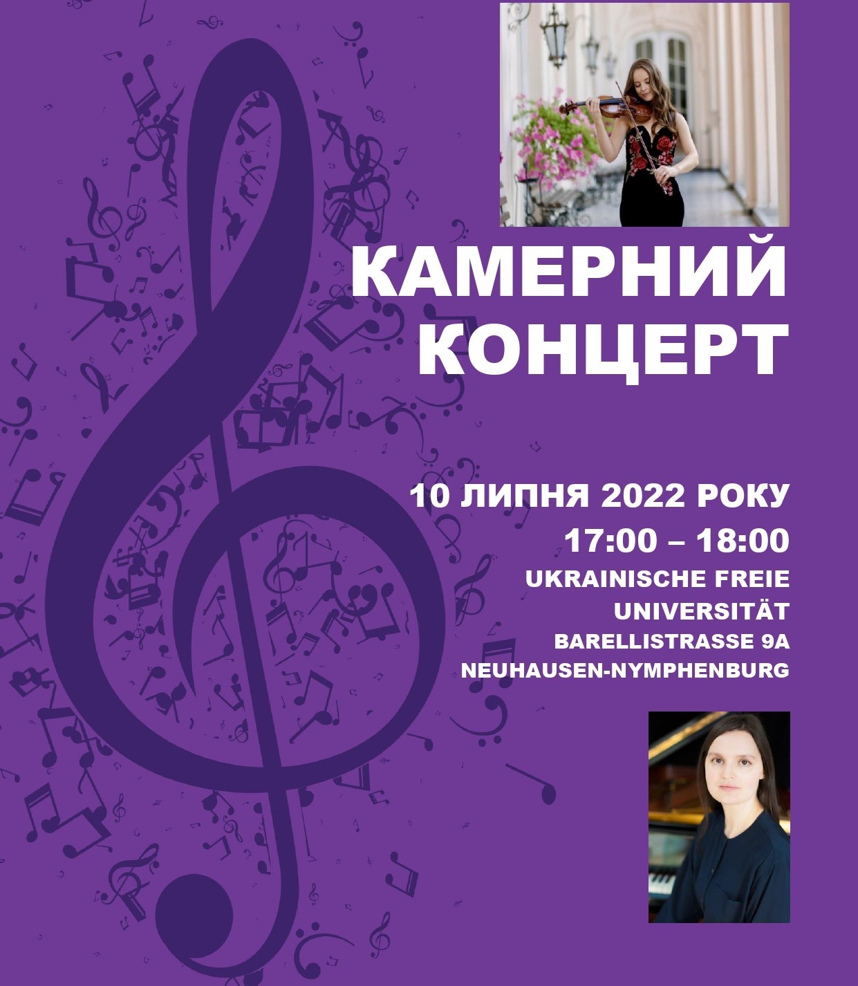 Запрошуємо Вас на Камерний концерт, який відбудеться 10 липня о 17:00 год. в приміщенні Українського вільного університету (Barellistr. 9a, 80638 München).