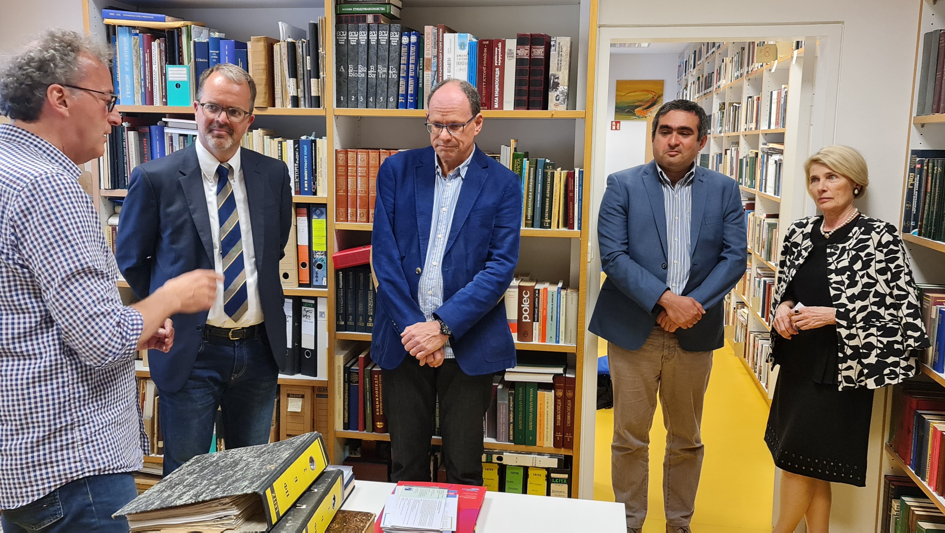 Mit großem Interesse machte er sich unter fachkundiger Anleitung von Dozent Peter Hilkes mit den einzigartigen Zeitschriften der Bibliothek und Materialien des UFU-Archivsaals als überragendes, einzigartiges Dokument und Gedächtnis ukrainischen Lebens in und außerhalb der Ukraine ab den 1920er Jahren vertraut.