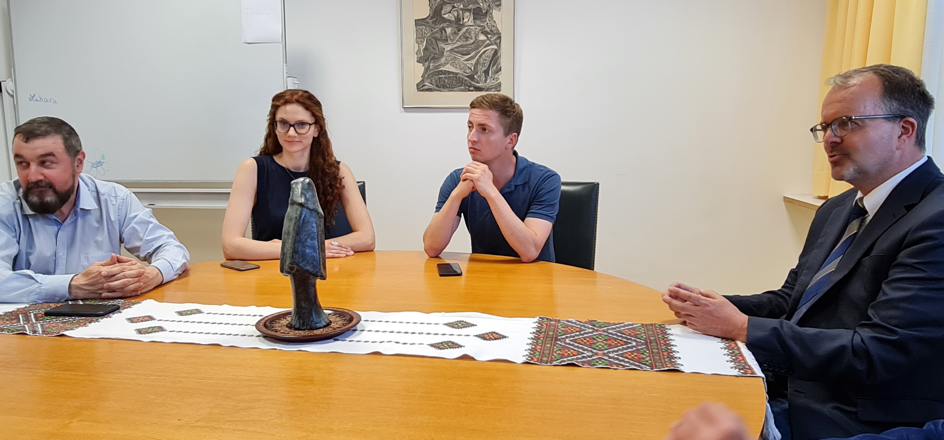 Am 13. Juni besuchte Landtagsvizepräsident Markus Rinderspacher (SPD) die Ukrainische Freie Universität. Der Abgeordnete sprach mit Rektorin Prof. Dr. Maria Pryshlak und der Universitätsadministration über die aktuelle Situation an der UFU vor dem Hintergrund des Krieges in der Ukraine und der Schutzsuchendenwelle in Deutschland. Hierbei standen die derzeitigen Herausforderungen der vor dem Krieg geflüchteten Studierenden im Fokus. Im Dialog mit den neu gewählten Vertreterinnen und Vertretern des Studenten- und Doktorandenrates konnte er aus erster Hand Eindrücke gewinnen, auch zum sozialen Engagement der Studierenden im Zusammenhang mit dem Hilfs- und Begleitprojekt „GRUND“ für traumatisierte Kinder und ihre Mütter.