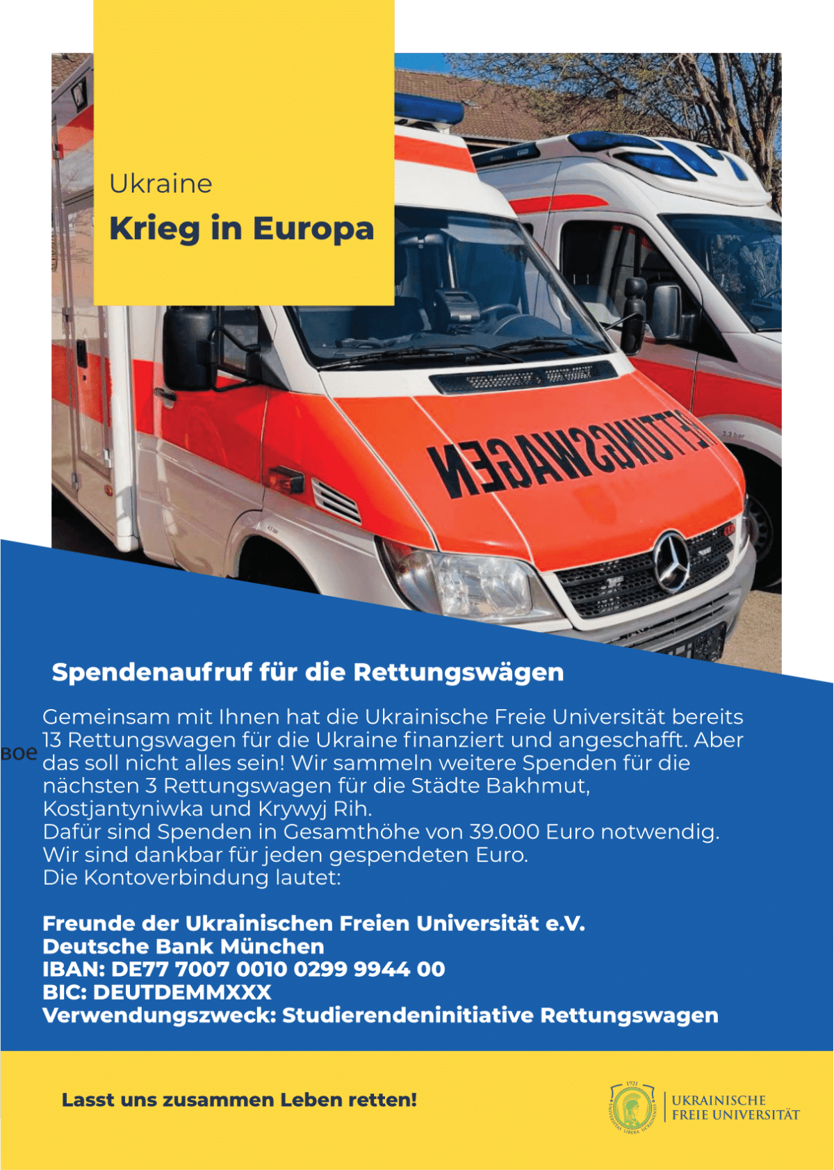 Wir laden Sie herzlich zum Benefizkonzert für die Ukraine ein, das am 28.01 um 17:00 an der Ukrainischen Freien Universität stattfindet.