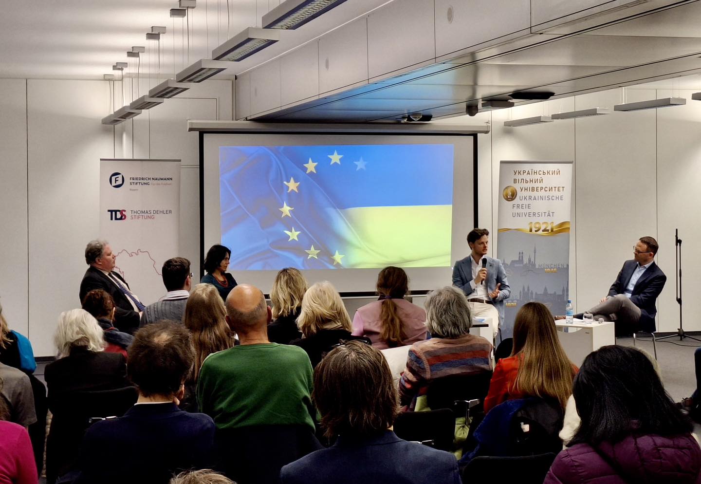 Am 23. April 2024 fand an der UFU eine Diskussion zum Thema “Ukraine und die EU: Auf dem Weg zur Mitgliedschaft?” statt, die gemeinsam mit der Friedrich-Naumann-Stiftung Thomas Dehler Stiftung und der Europäischen Akademie in Bayern organisiert wurde.