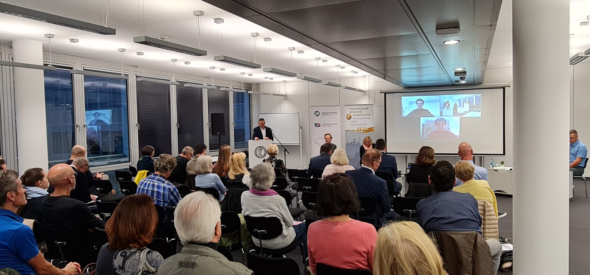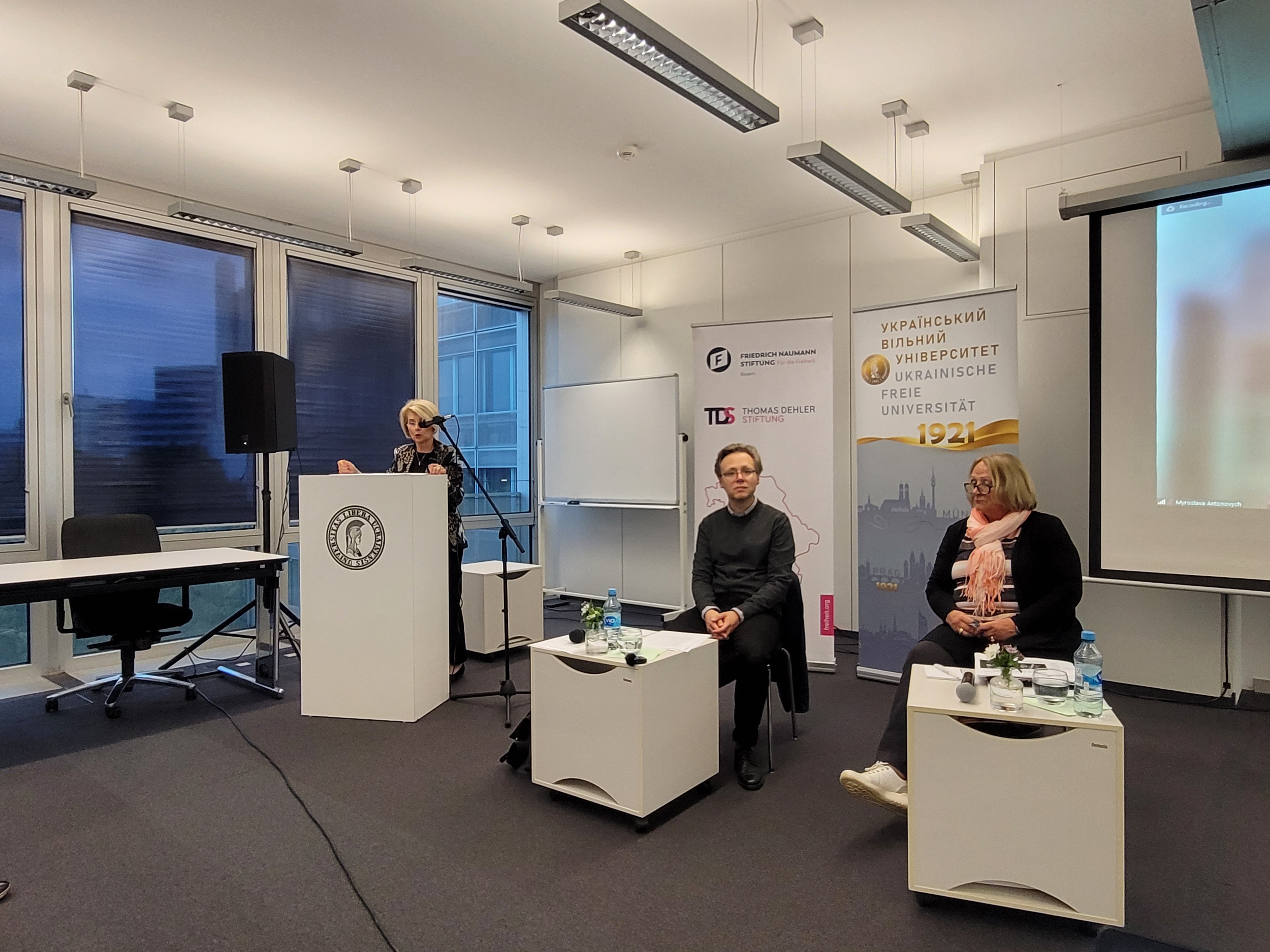 Am 23. Oktober veranstaltete die Ukrainische Freie Universität gemeinsam mit der Friedrich-Naumann-Stiftung und der Thomas-Dehler-Stiftung die Podiumsdiskussion „Russische Kriegsverbrechen und Genozid in der Ukraine“.