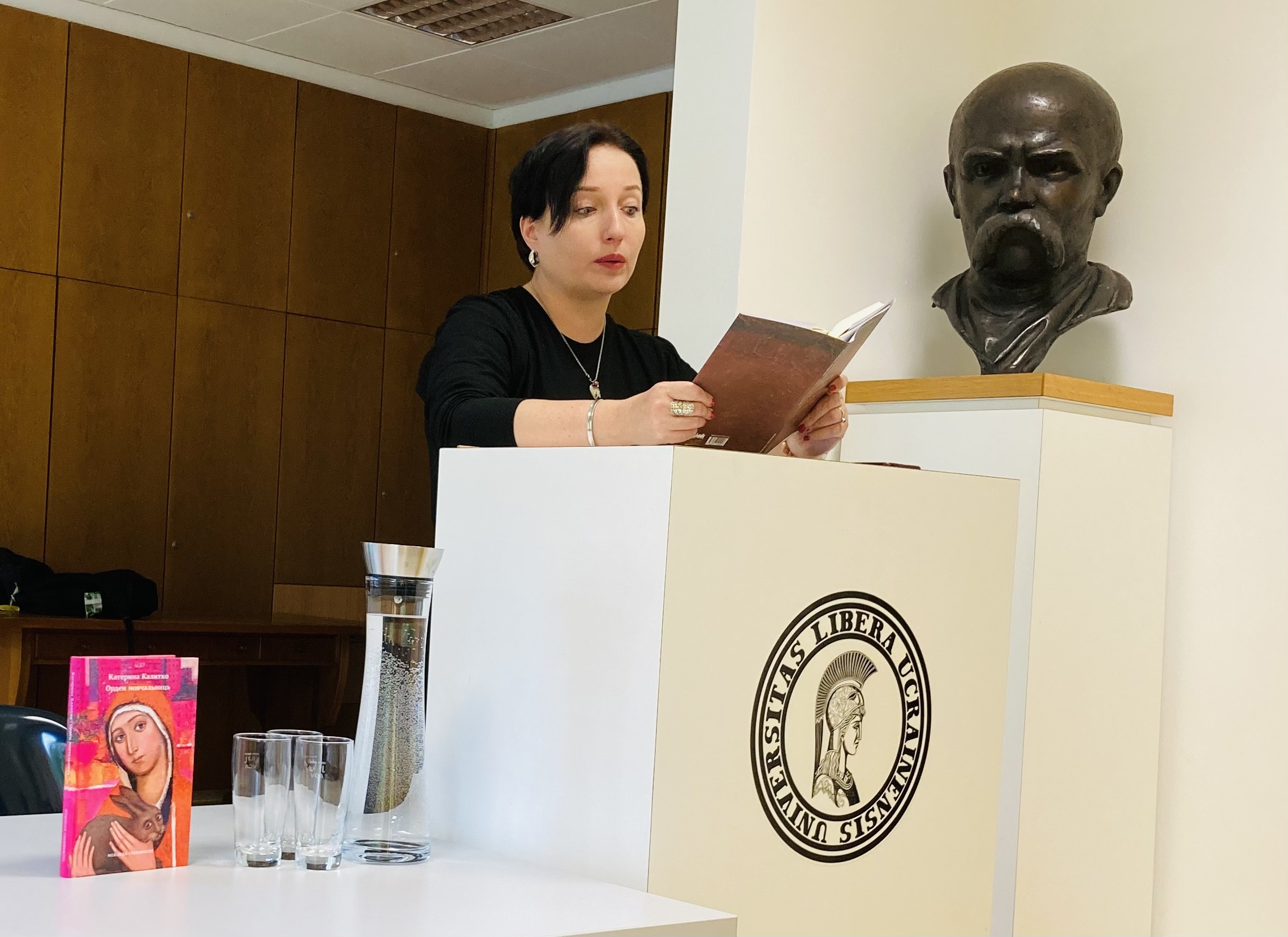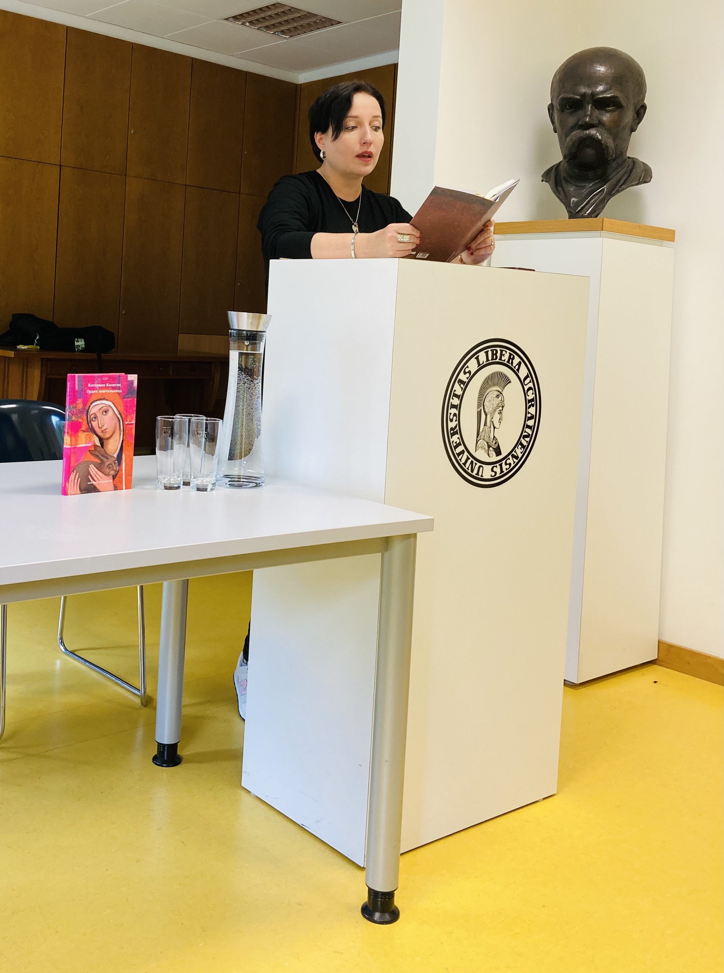 В суботу 24 вересня – сім місяців від початку війни в Україні – письменниця і поетеса Катерина Калитко відвідала Український вільний університет, щоб представити свою нову збірку поезії «Люди з Дієсловами». Ця збірка об’єднує в собі вірші написані до і після вторгнення Росії в Україну. Авторка влаштувала присутнім сюрприз, додавши до своїх читань вірші, які написала останніми днями – після Бучі, Ізюма і катування воїнів батальйону «Азов». Сильні слова поетеси залишаться в пам’яті та серцях усіх учасників цієї зустрічі. Дійсно наступив час дієслів–допомогти, рятувати, пам’ятати, воювати, помститися.