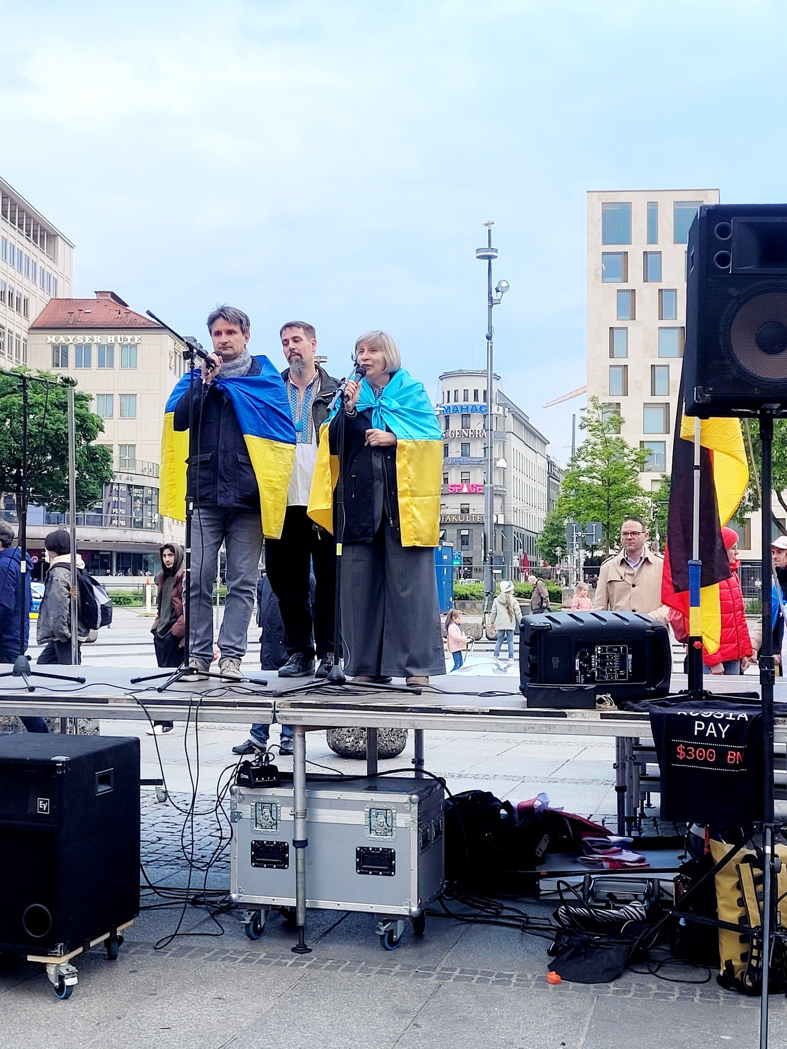 Am selben Tag nahmen Prof. Larysa Didkovska und das UFU-Team an einer Gedenkdemonstration der ukrainischen Gemeinde auf dem Karlsplatz in München teil. Die Rektorin hielt eine Rede vor dem Publikum