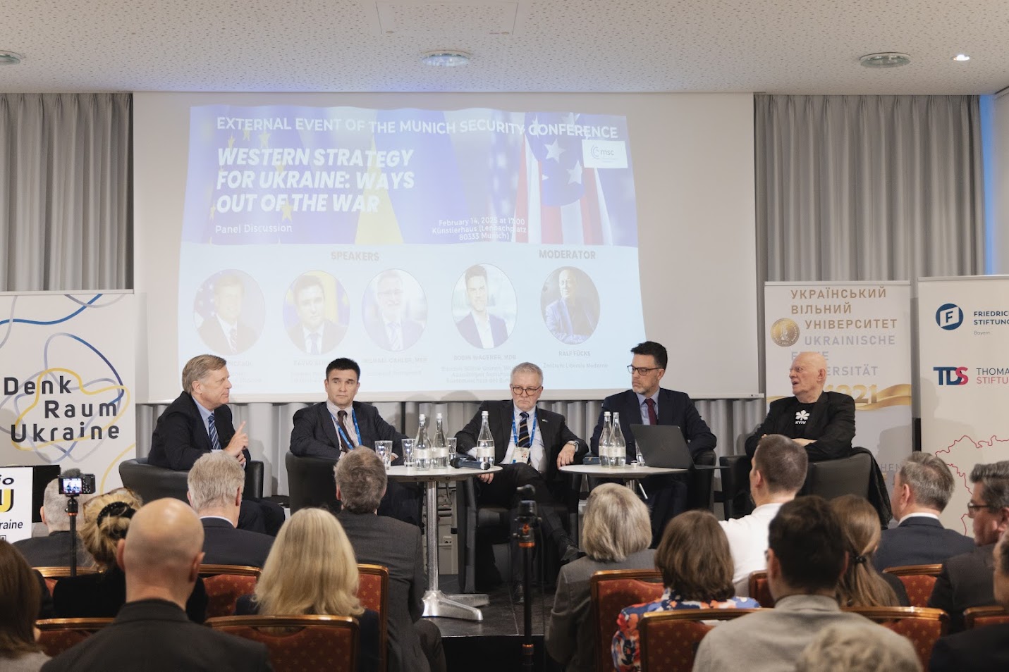 Ein Schlüsselereignis für uns war die gemeinsam mit dem Zentrum Liberale Moderne, dem Peutinger Collegium und dem Denkraum Ukraine organisierte Podiumsdiskussion „Western Strategy for Ukraine: Ways out of the War“, die als externe Veranstaltung der Münchner Sicherheitskonferenz im Konferenzsaal des Künstlerhauses stattfand.