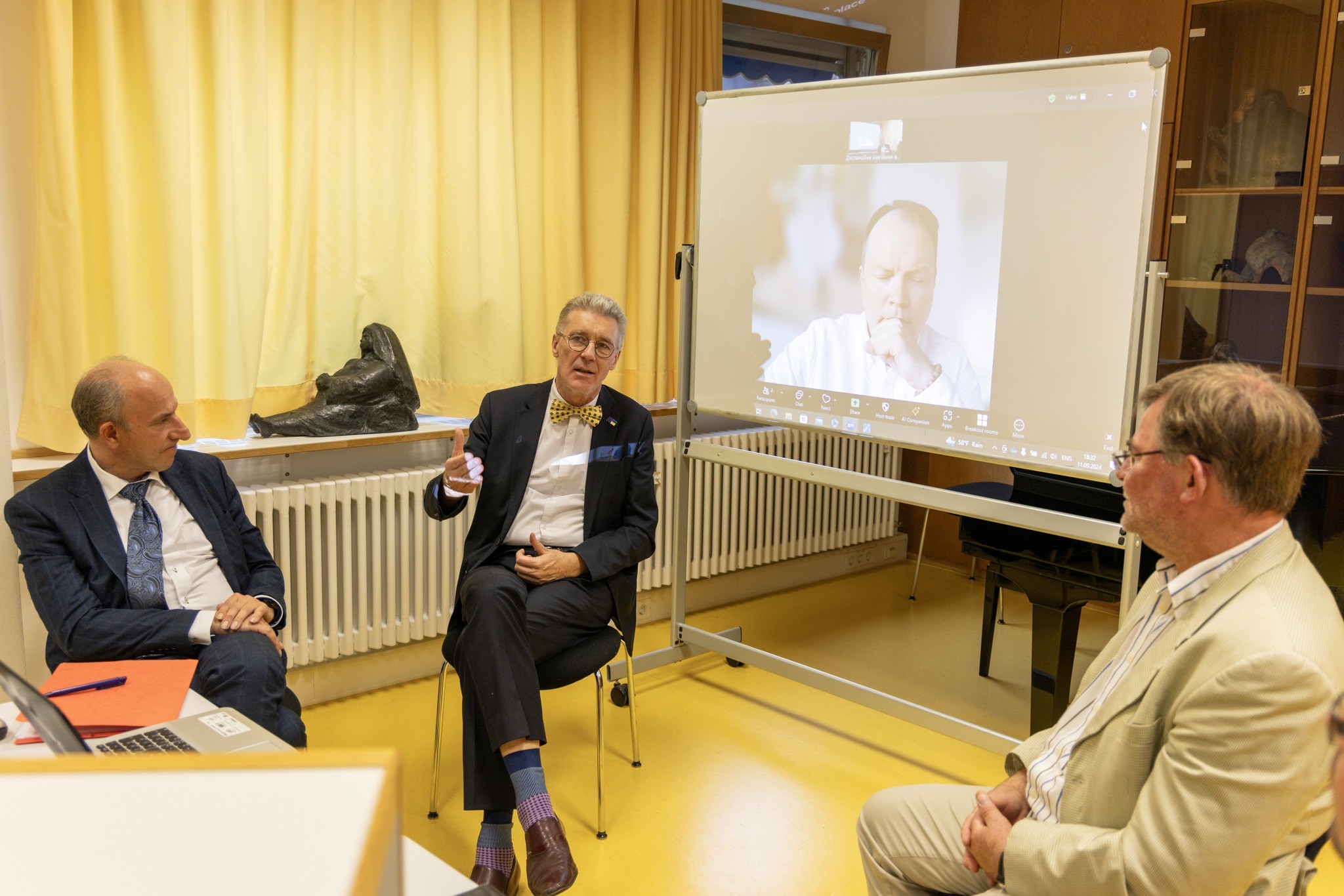 Nach der Präsentation fand eine Diskussion zur kritischen Bewertung der ergriffenen Maßnahmen statt, bei der die weitere Entwicklung der Unterstützung und des Schutzes kultureller Werte im Hinblick auf den Wiederaufbau der Ukraine besprochen wurde. An der Diskussion nahmen der Geschäftsführer des Kulturfonds für Vertriebenen Thomas Konhäuser , der Vorsitzende des Rates der Deutschen in der Ukraine Volodymyr Leysle und der EU-Diplomat, Professor der UFU Gerhard Sabathil, teil.